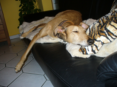 Im Jahre 2002 hatten wir eine Woche Teneriffa gebucht, ich dachte mir, wir tun ein gutes Werk und werden Flugpaten. Da wurde ich auf das Schicksal der Podencos aufmerksam. Auch diese Hunde werden auf den span. Inseln in den Bäumen aufgehängt oder anderweitig entsorgt. Ich war sofort fasziniert von diesen Hunden. Ich hatte dann auch das Glück in dem Tierheim für das wir 2 Hunde mit nach Deutschland nahmen, eine junge ausgesetzte Podenca kennen zu lernen.