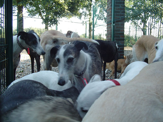Irgendwo dort mittendrin, zwischen riesigen Greys und Galgos entdeckte ich den kleinen Engel mit den traurigen Augen. Es war sehr schwierig für sie, sich bis zu uns durchzudrängeln, um uns zu begrüssen. Doch irgendwie hat sie es dann doch bis zu uns geschafft.