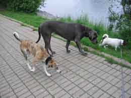 "… Die Bedenken bezüglich Conny teile ich mit Dir; ich hätte es gern schon von Beginn an ruhiger. Aber wie Du schon beruhigend schreibst - auch das habe ich bereits gedacht - vielleicht ist alles gar nicht so schlimm, wenn sie erst einmal mit meinen Hunden toben kann und viel Abwechslung bekommt. Die Welpenzeit mit der Dogge, als ich ja auch schon eigentlich gar keinen Kleinen mehr haben wollte, war auch nicht schlimm..........