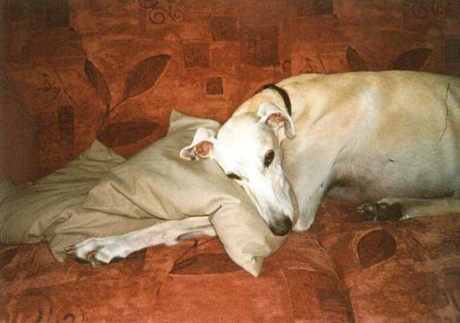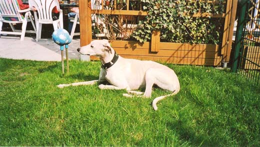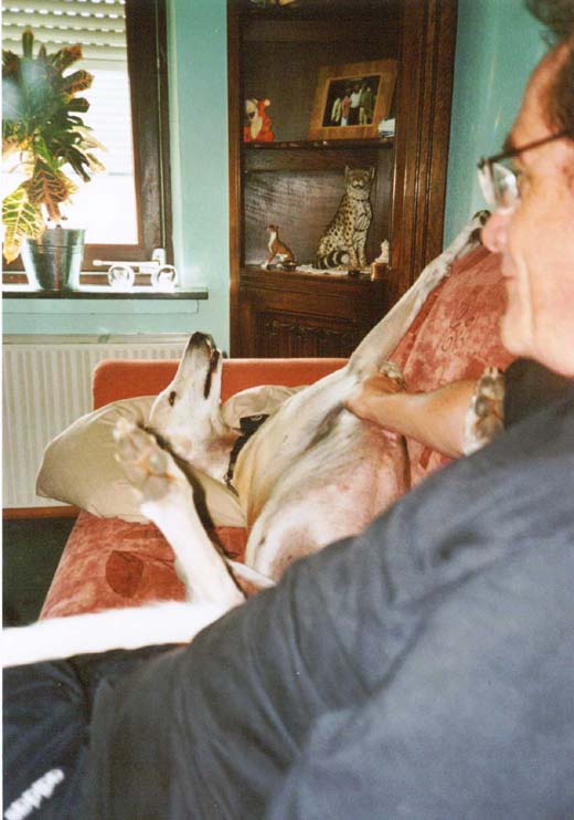 Aber, aber, aber...., da mein Mann Richard in Holland arbeitet und dadurch die ganze Woche weg ist, überkam mich bald die Einsamkeit. Ich hatte schon immer einen Hund und irgendwie konnte ich es ohne Hund nicht aushalten. Wir besuchten das private Tierheim, wo wir Jess gefunden hatten, aber hier hatte man jetzt keine Border Collies mehr, sondern Windhunde. Wir lernten Kitty, eine Greyhoundhündin, kennen und mein Mann war hin und weg. Leider war Kitty schon vermittelt, aber ihr Wesen, ihr Fell und vor allem ihr Blick ließen uns nicht mehr los. Also suchte Richard im Internet und entdeckte bei GPI Gio, heute heißt er Joe, einen Galgorüden. Ich war mir noch unsicher, denn ich wollte lieber einen kleinen Hund, aber ein Blick auf Joe und ich war verliebt! Wir vereinbarten mit Anja Arend von GPI einen Besuchstermin und beim ersten Treffen hat es sofort gefunkt. Nachdem wir uns über Galgos informiert und einige Probespaziergänge absolviert hatten, stand unsere Entscheidung fest. Der Garten wurde "galgosicher" gemacht und das Abenteuer „Joe“ konnte beginnen!