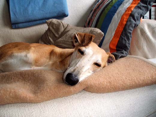 Das große Mädchen hat ihren Platz im Rudel entspannt angenommen. Die langen, kalten Wochen hat sie gut in einem maßgeschneiderten Mantel "made by Patentante Maren" überstanden. Anfänglich war ihre Bewegung noch ein bisschen unkoordiniert, mittlerweile gibt es aber keine Spur von Unsicherheit. Auch ihre anfänglichen Probleme die Nächte durchzuschlafen, haben sich gelegt. Das Klaramädchen kommt regelmäßig gegen 4:15h morgens ins Schlafzimmer und obwohl mein Wecker da schon seit 15 Minuten klingelt, "verschlafe" ich täglich seit Monaten zur Arbeit… diese Schmuseeinheit lasse ich mir nämlich nicht entgehen! Und so dösen wir noch 15, 20 und auch 30 Minuten. Gelegentlich kommt Klara auch mit zur Arbeit. Mittlerweile gibt es in jedem Büro auf meiner Etage Hundeleckerchen, denn einen von meinen Wauzis habe ich immer mal wieder mit. Und da soll noch jemand sagen, Hunde tragen nicht zu einer besseren Verständigung bei! ;-)