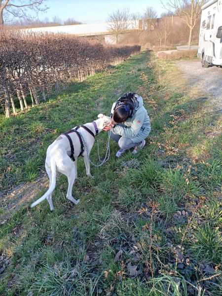 Als Leon aus dem Transport ausgeladen war, stand er zuerst fünf Minuten auf nahezu gleicher Stelle, schaute sich immer nach dem Transporter um. Was Leon empfand, konnte man ihm deutlich ansehen: Ich habe Angst, alles ist fremd, ich möchte bitte zurück in meine Box.