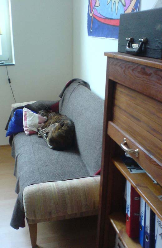 Alles begann mit den Dinosauriern, die dann aber durch eine Reihe unerklärlicher Vorkommnisse ausgestorben sind. Irgendwann, viele, viele Jahre später wurde ich dann von heftigen Migräneattacken heimgesucht und meine Heilpraktikerin riet zu regelmäßigen Spaziergängen. Voller Elan und guten Vorsätzen habe ich dann auch genau 2 Tage durchgehalten, da es am dritten Tag geregnet hat. Bei meinem nächsten Gespräch riet sie mir: „Schaffen sie sich einen Hund an.“ Okay, die Lösung lag auf der Hand, aber sollte gut durchdacht sein. Mein letzter Hund war ein Afghane und der letzte Hund meiner Frau war ein Boxer gewesen. Und natürlich waren das die tollsten Hunde der Welt. Also vergingen weitere 3 Monate, bis „Tiere suchen ein Zuhause“ für den entscheidenden Entschluss sorgte.
