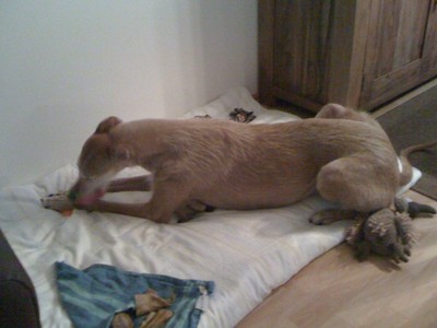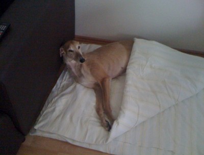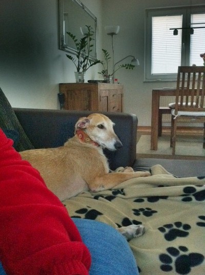 Über meine Freunde Lisa und Dirk mit ihren Galgos Apollo und Lilly haben wir schon viel über diese Hunderasse erfahren und auch einige Bücher verschlungen. So sind wir eines Samstagsnachmittags mit Lisa und Dirk in Willich bei GPI gelandet um uns "nur mal zu informieren". Na ja, nach 13 langen Tagen war es dann auch soweit. Und jetzt kommt Lucy zu Wort: Mein großer TAG Nina hatte mir schon gesagt, dass mein GROSSER TAG bald kommen würde und ich war schon total aufgeregt. Um 15 Uhr am 04.02.2011 war es dann soweit. Ich wurde von meiner neuen Menschenmama in Willich von der Pflegestelle abgeholt und in mein neues Zuhause nach Duisburg gefahren. Ich war sehr nervös, was nun mit mir passieren würde, aber ich hatte ein gutes Gefühl und bin auch direkt ins Auto gesprungen. Angekommen in meinem neuen Zuhause, habe ich erst mal die neue Gegend/Lage erkundet und auch nicht lange gebraucht um den Weg auf die Couch zu finden. Da geht noch eine Treppe in den 1. Stock, die aber total glatt aussieht und diese hat mich bis heute nicht eingeladen, auch nur eine Pfote auf ne Stufe zu setzen um diese unbekannte Etage zu erkunden. Das hebe ich mir für später auf.