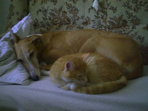 Unsere Katzen hingegen waren sehr interessante Jagdobjekte. Aber das ließen sie sich ja nicht gefallen und bei einer "Attacke" gab es einfach eins auf die Nase. Nach etwa 3 Wochen war alles geklärt und es hatte sich ein Rudel aus Hunden und Katzen gebildet.