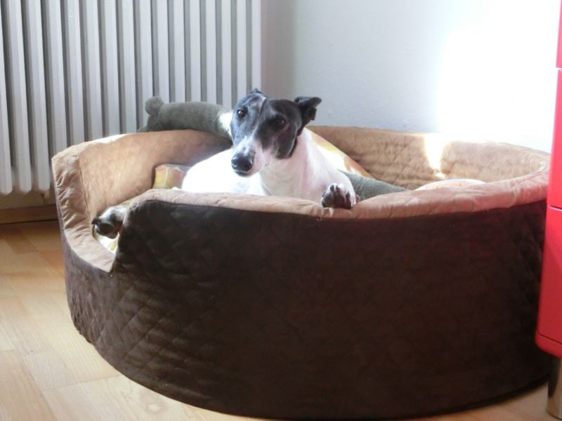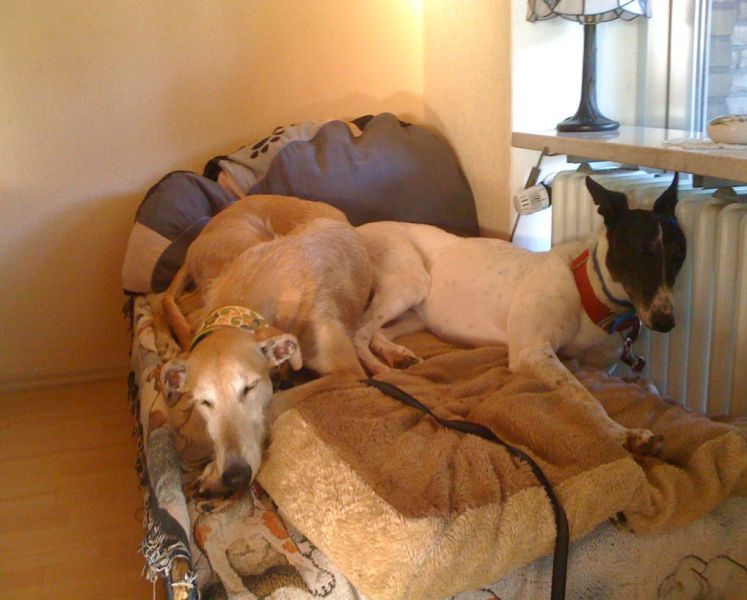 Heute liegt sie fast jeden Abend mit Lucy und mir auf der Couch und nachts schläft jeder in seinem Bettchen im Schlafzimmer. Die zwei bleiben über Tag alleine zuhause und auch das klappte von Anfang an.