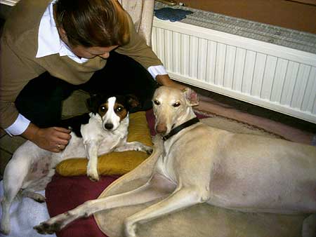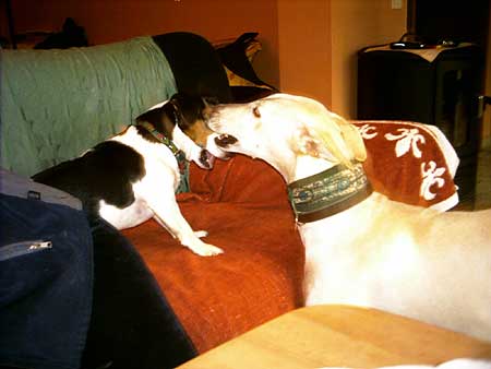 Wir suchten eigentlich eine kleine, zarte und ruhige Hündin. Eilig hatten wir es nicht, und es musste auch einiges berücksichtigt werden. Eine männliche Jack-Russel Diva zu vergesellschaften ist nicht ganz so einfach! Jacko ist ein Schatz, ein typischer Terrier, etwas zickig und leider auch ziemlich verwöhnt. Wir suchten nicht zwingend einen Galgo, aber merkwürdigerweise kam ich wie von Geisterhand immer wieder auf die Internetseite von Nina Jordan. Nach mehreren sehr schönen Telefonaten fühlte ich mich auch sehr gut aufgehoben und beraten von Rosi Fassbender.