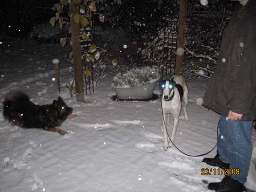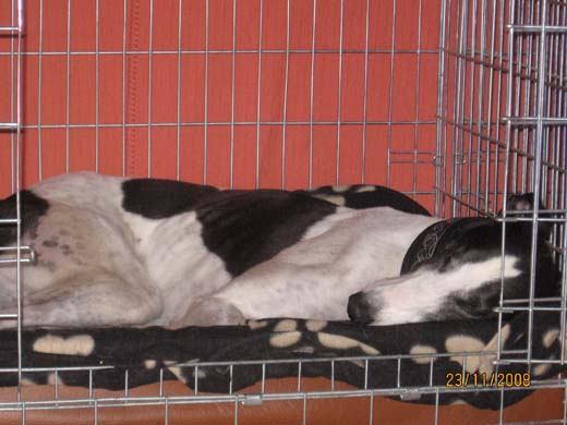 Zur Zeit leben sie eher noch nebeneinander als miteinander, aber wir sind froh, dass Lara als durchaus zickige Hündin Patchy so gut aufgenommen hat und Patchy sich von Lara überhaupt nicht beeindrucken läßt. Nur wenn Lara Patchy (bislang leider vergeblich) zum Spielen auffordert, wird es ihm schon mal zu viel (er scheint keine Ahnung zu haben, was sie von ihm will). Dann kann es auch schon mal vorkommen, dass er sie ganz zaghaft anknurrt. Aber dann läßt Lara den "Spielverderber" eben mal ein paar Stunden links liegen.