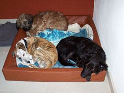 Wir hatten im September 2005 unseren 16-jährigen Mischlingsrüden Buck einschläfern lassen müssen und die Lücke, die er hinterließ war riesig. Ich hatte ihn mit sieben Wochen bekommen und er war mir immer ein toller Freund und Begleiter gewesen, wenn auch manchmal auf recht schrullige Art! Peter und ich vermissten ihn sehr. Auch unsere beiden anderen Hunde, Kira (Bucks Partnerin) und Ike (Bucks und Kiras Sohn) waren ungewöhnlich still. Aber wir wollten die Lücke nicht nur des Füllens wegen füllen und entschieden uns deshalb, zunächst einem Hund aus Spanien als Pflegehund eine Chance zu geben.