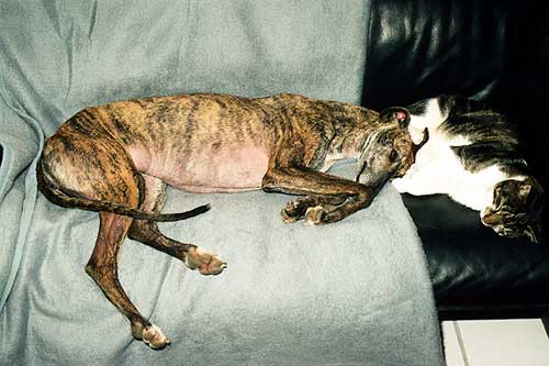 Die Galgohündin Shari lebt seit dem 28. Dezember 2003 in ruhiger Umgebung bei Martina und Robert Küppers, zusammen mit den Tierheimkatzen Miro und Kandinsky, und seit dem 22. Mai 2004 mit ihrer Freundin Deena - ebenso einer Galgohündin, die wie Shari vom Tierheim Scooby stammt.