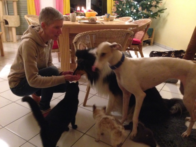 Stella musste sofort mit meiner Großfamilie die Weihnachtstage verbringen. Darunter waren wilde Kleinstkinder und zwei schreiende Säuglinge. Es war laut und voll. Aber Stella schaffte auch diese Feuerprobe.