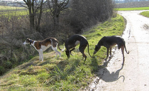 Also wir können nur jedem Hundefreund empfehlen, der sich nicht gerade mit seinem Hund sportlich betätigen möchte, ein behindertes Tier zu adoptieren. Sie machen sehr viel Freude und eine großartige Sonderbehandlung ist eigentlich nicht notwendig. Inzwischen kann ich sagen, dass ich durch die Behinderungen unserer beiden Mädels viele Menschen, ob nun Hundebesitzer oder nicht, auf das Elend der Greyhounds und Galgos aufmerksam machen konnte. Die Misshandlungen werden den Menschen beim Betrachten der beiden Hündinnen erst richtig bewusst und alle sind sehr bestürzt, wenn sie sehen, was diese sanftmütigen Tiere erleiden müssen. Denn seelische Misshandlungen oder Verletzungen, die unter dem Fell verborgen bleiben und die dem Betrachter nicht direkt ins Auge springen, werden von den meisten Menschen, die wir beim Spaziergang auf der Strasse treffen, nicht so ernst genommen. Sie kennen sich eben nicht mit der Situation des Tierschutzes im Ausland aus und beschäftigen sich nicht mit diesem Thema. Und ehrlich gesagt, es übersteigt auch immer wieder meine Vorstellungskraft, zu was Menschen fähig sind.