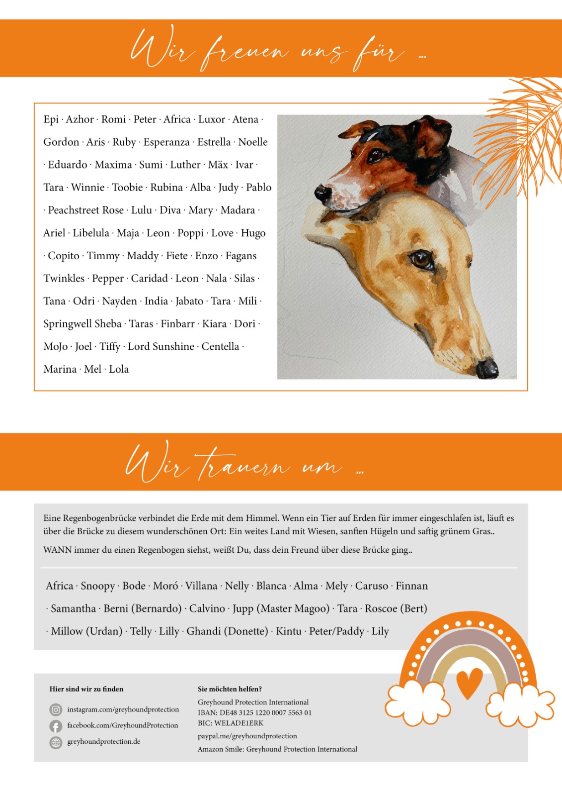 Ganz herzlich möchten wir uns auch in diesem Jahr für Ihre und Eure Unterstützung und Hilfe bedanken, denn diese ist nicht selbstverständlich, für unsere Hunde aber überlebenswichtig.