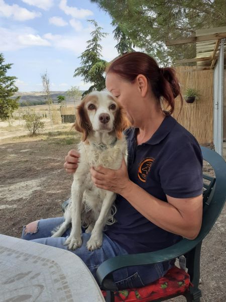 Die kleine Bretonen-Mix-Hündin Rosita ist eine wirklich zuckersüße Maus. Ihr Besitzer ist gestorben und Rosita wurde in der brütenden Sommerhitze auf den Balkon ausgesperrt, der Tierarzt hat sie gefunden. Pilar wurde von ihm angesprochen und hat Rosita mitgenommen. Die Kleine ist wirklich fit für ihr Alter, katzenverträglich und einfach lieb.