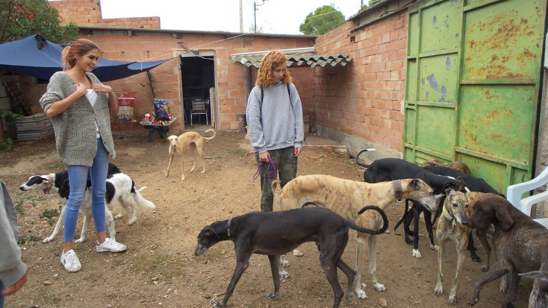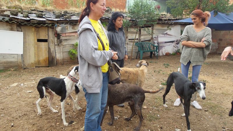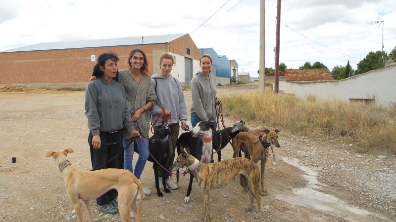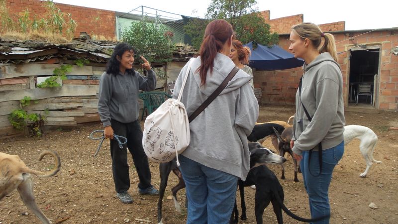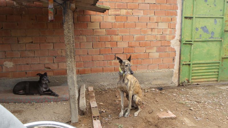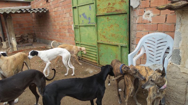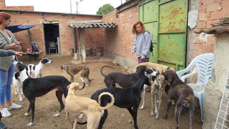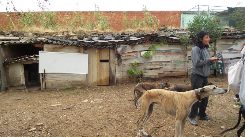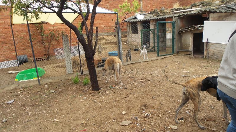 Auf dem Gelände befindet sich eine stetig wachsende Zahl an Hunden, überwiegend Galgos, andere Jagdhunde, auch einige andere Rassen. Allein ein Zwinger mit Galgo- und Podencowelpen. Die 3 Galgowelpen werden zum Glück von SOS Barcelona übernommen, die Pilar öfters junge Galgos abnehmen da die Rasse in Katalonien inzwischen als Haustier bekannt ist. Nur die Podencos will keiner, dieser Rasse ergeht es so, wie vor etwa 10 Jahren den Galgos. Nur Jäger halten sich Podencos, keiner will sie als Familienhund. Hier ist noch sehr viel Aufklärungsarbeit nötig!