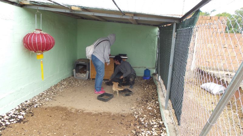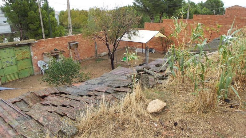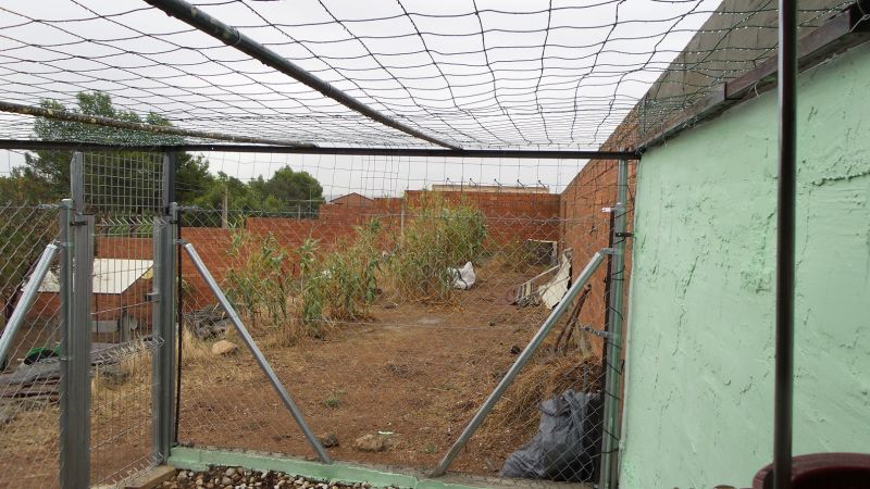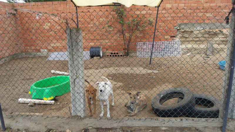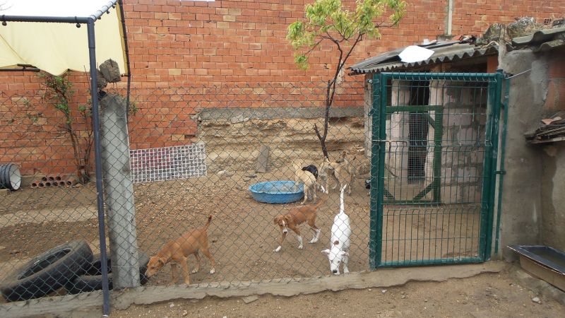 Eine andere Tierschützerin hatte dieses „neue“ Gelände, das von einer hohen Mauer umgeben ist, bereits für ihre Streuner angemietet. Aktuell teilt sich Pilar mit ihr die Arbeit dort ...und davon gibt es mehr als genug. Aus der Not heraus haben die drei Frauen das Grundstück provisorisch her gerichtet d.h. von sehr viel Unrat befreit (wie z.B. einer toten Ziege des Vorbesitzers) um es erstmal irgendwie bewohnbar zu machen und mit Mörtel und Zement sichere Zäune für verschiedene Zwinger zu errichten um die Hunde in Gruppen unterteilen zu können. Es ist aber insgesamt in einem sehr schlechten Zustand, zugig und nicht isoliert, das Dach sieht nicht sehr vertrauenerweckend aus und wir wissen nicht wie die Situation im Herbst und Winter dort wird.(siehe Fotos) Außerdem ist die Nachbarschaft nicht sicher für die jungen Frauen, wenn sie dort übernachten, aber auch für die Hunde. Es ist nur eine Lösung auf Zeit.