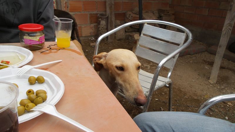 Unser Besuchsmonat September ist kurz vor der Jagdsaison: auf den Straßen mehren sich die streunenden Hunde die vom Jäger zurückgelassen wurden, da sie „nichts mehr taugen“. Wie im Fall der sandfarbenden Galga India (Fand in Barcelona bereits ein Zuhause): Pilar erhielt einen Anruf eines Jägers, der eine Galga abzugeben hätte. Sie vereinbarten eine Zeit, zu der Pilar die Hündin bei ihm abholen konnte. Kurz vor dem Termin rief der Jäger wieder an: er hätte jetzt was anderes zu tun und die Galga schon mal auf die Straße gelassen. So sind Pilar und Maria dorthin gefahren und haben 1,5h nach der Hündin gesucht, bis sie sie glücklicherweise wohlbehalten einsammeln konnten.