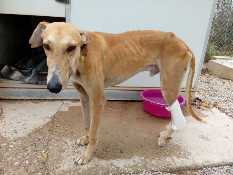 Pilar konnte nach mehreren Versuchen, den Besitzer endlich davon überzeugen, ihr Pichin zu überlassen. Jetzt ist er operiert, aber er wird wahrscheinlich immer etwas hinken.