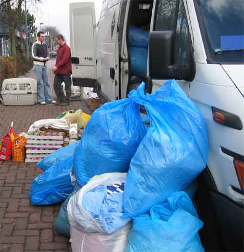Wenn ein Transport mit Tieren aus Spanien kommt, sehen wir zu, daß so viele Spenden wie möglich mitgenommen werden können.
