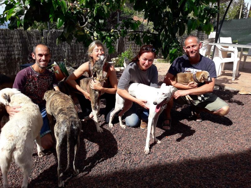 herzliche Grüße von Marc (Tierheim Seproan, Streunerhilfe Katalonien), Monica Planes (Tierheim Cristobal) mit Nelly, Nina mit Amy im Arm, und Karl-Heinz mit Marquesa.